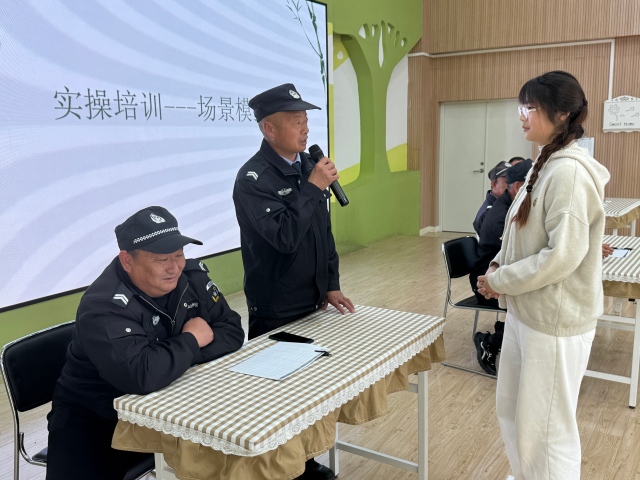 会议依次开展理论培训、实操演练与经验交流、重点工作部署等环节。理论培训中,明确了保安的岗位职责、执勤规范及工作衔接要求,细化了值班、门禁、巡查、消防设备使用等核心工作标准;实操环节开展了家长咨询场景模拟,提炼“主动迎候+礼貌问候”的沟通准则;莉湖分园夜间值班门卫还分享了夜间巡逻、突发情况处理等实操经验。