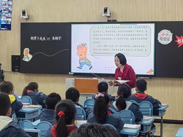 现场特邀江苏省人民教育家培养对象、南京市秦淮区教师发展中心副主任刘红老师担任授课专家。这是一节紧扣新课标、充满儿童味的优质童话课。刘老师精准把握三年级“感受童话奇妙”的核心要求,用精巧的情境设计,把孩子们带进了奇幻的童话世界。课堂上,学生们在沉浸式阅读中主动猜想、大胆表达,不仅读懂了故事,更在“胡子还能用来做什么”的自主表达中,激发了想象力与创造力,真正实现语言运用、思维能力、审美创造的同步提升。整堂课轻松愉悦,既落实了语文要素,又守护了孩子的童心童趣,为童话教学提供了很好的示范。课堂展示结束,多位一线骨干教师围绕“新课标 新思维 新课堂”主题,开展了专项教研。整个教研活动紧扣乡村语文教学中教学目标的制定、教学情境与任务的设计、学习活动的开展、教学评一致性的落实等痛点、难点,交流教学心得、探讨教法改进,进一步明晰新课标落地实施的路径,助力乡村教师提升专业教学能力。