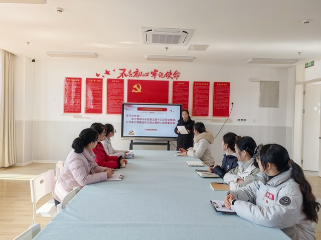 随后,鲁群同志带领全体同志学习区委五届十三次全会精神,重点解读区域发展目标与党建引领要求,全体同志围绕“党建引领幼儿园立德树人高质量发展”交流研讨,大家紧扣幼儿园保教工作实际,进一步找准了学前教育高质量发展的实践着力点。