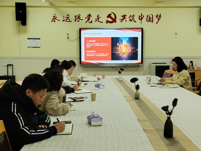 最后,党支部书记石芳以《紧绷纪律之弦 坚守从教底线》为题讲授专题党课。石芳书记结合幼教系统工作实际,从纪律意识淡薄、职业操守失范、工作作风漂浮等五类常见违纪问题入手,通过典型案例警示、纪律红线解读,为全体党员敲响廉洁警钟。她强调,党员教师必须知敬畏、存戒惧、守规矩,将廉洁纪律内化于心、外化于行。同时,她还就意识形态工作提出明确要求,提醒大家坚守政治底线,规范言行举止。