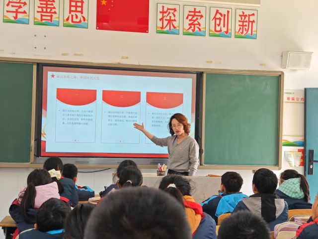 12月25日上午,竹镇中心小学教育集团开展“奋进现代化 奋力挑大梁”主题宣讲活动。本次活动由党支部书记郭丽芹主持,少先队员代表佩戴红领巾全程参与。