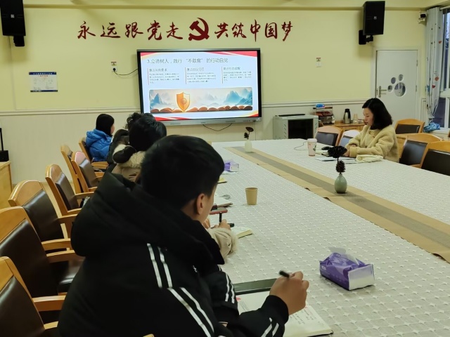 最后,党支部书记石芳以《紧绷纪律之弦 坚守从教底线》为题讲授专题党课。石芳书记结合幼教系统工作实际,从纪律意识淡薄、职业操守失范、工作作风漂浮等五类常见违纪问题入手,通过典型案例警示、纪律红线解读,为全体党员敲响廉洁警钟。她强调,党员教师必须知敬畏、存戒惧、守规矩,将廉洁纪律内化于心、外化于行。同时,她还就意识形态工作提出明确要求,提醒大家坚守政治底线,规范言行举止。