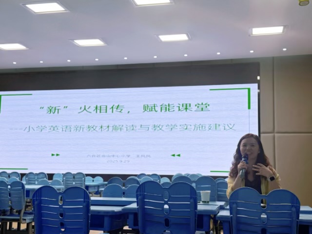 课堂展示结束后,治山中心小学的王凤凤老师带来了题为《“新”火相传,赋能课堂——小学英语新教材解读与教学实施建议》的专题讲座。王老师从新课标核心理念出发,结合具体案例,对新教材的编写思路、结构特点及教学重难点进行了透彻分析,并提出了诸多切实可行的教学建议,为教师们后续的教学实践指明了方向。