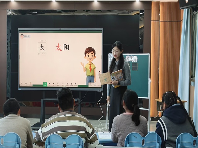 史训誌老师的生活语文《日月潭》以“爱国主义教育”为隐性主线,通过AI数字人“兰兰”创设旅游情境,引导学生学习“潭、湾、湖、树”等汉字,理解日月潭的地理位置与环境特点。课堂融合地图拼图、词语配对、书写手册等多元资源,强调“字不离词、词不离境”的教学逻辑,潜移默化渗透国土认知与家国情怀,体现语文教学与价值引领的有机结合。