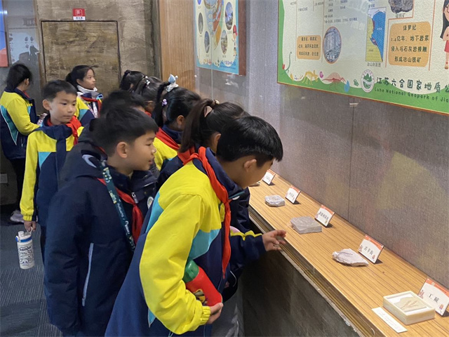 上午9:50,师生们有序乘车前往国家地质公园石柱林,大家有序参观地质陈列馆地质标本,了解地质环境变迁的奥秘,石柱形成的原因、排列的方式等知识。在实地观赏环节,大家细致观察,在实践中感受地质科学的魅力,并纷纷留影纪念。