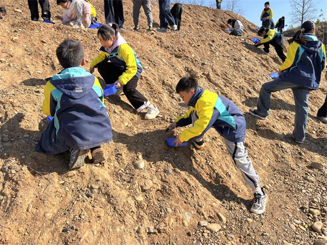 午餐休整后,全体师生来到雨花石地质公园开展深度探索实践。在雨花石博物馆,了解雨花石形成的知识,在雨花石体验区,寻找、捡拾雨花石,淘石体验点燃了大家的热情,同学们纷纷拿起小铲子,亲手开探。